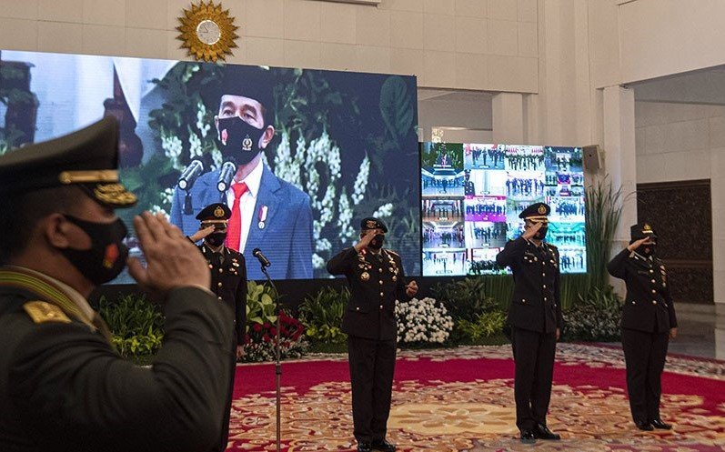 JAKARTA- Presiden Joko Widodo menyatakan keterlibatan seluruh jajaran Polri untuk menghadapi pandemi COVID-19 sangat dibutuhkan termasuk dalam menjaga protokol kesehatan dan mengawal distribusi bantuan sosial.