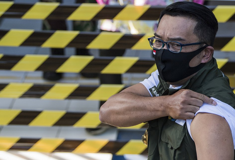 “Jadi setelah disuntik itu, testimoni pribadi saya ini agak pegal-pegal, ada rasa nyut-nyutan selama lima menit,” ujar Ridwan Kamil.
