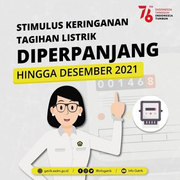 Pemerintah melalui Kementerian ESDM telah menginstruksikan kepada PT PLN (Persero) untuk melaksanakan perpanjangan pelaksanaan pemberian stimulus program Ketenagalistrikan pada triwulan IV tahun 2021, dengan mekanisme sebagai berikut: